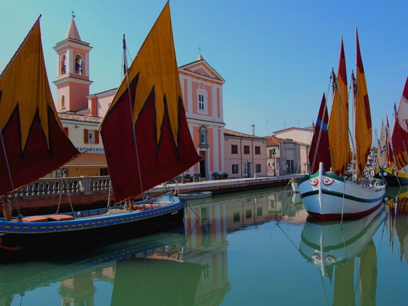 Cesenatico is a port town with about 20,000 inhabitants on the Adriatic coast of Italy . It is located in the province of Forlì-Cesena in the region of Emilia-Romagna , about 30 km south of Ravenna . Cesenatico's port canal was surveyed and drawn by Leonardo da Vinci at the request of Cesare Borgia , as part of his plans to fortify the nearby town of Cesena . Узнать больше